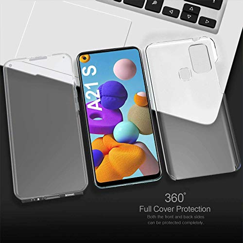 COPHONE - Cover per Samsung Galaxy A21S 100% trasparente 360 gradi protezione totale morbida anteriore + rigida posteriore. Custodia touch antiurto a 360 gradi per Galaxy A21S