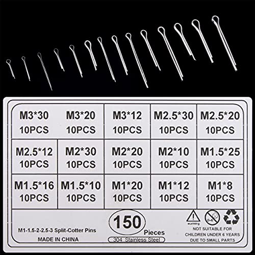 15 Dimensioni: 150 pezzi coppiglie, 10 di ogni dimensione: M1*8 M1*12 M1*20 M1.5*10 M1.5*16 M1.5*25 M2*10 M2*20 M2*30 M2.5*12 M2.5*20 M2.5*30 M3*12 M3*20 M3*30, abbastanza per soddisfare le tue esigenze quotidiane.