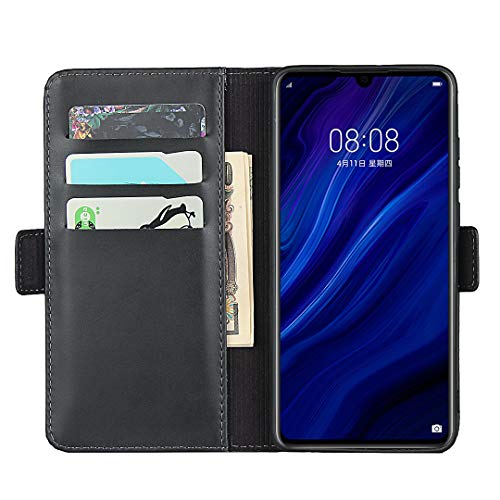 Copmob Cover Huawei P30,Premium Flip Vera Pelle Portafoglio Custodia,[3 Slot][Funzione Stand][TPU Antiurto],Magnetico Doppia Fibbia Custodia per Huawei P30 - Nero