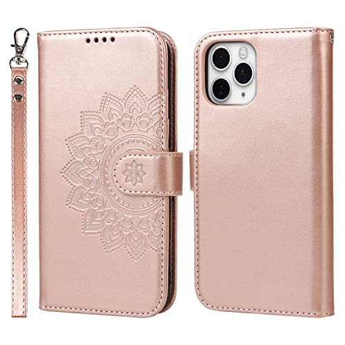 Copmob Cover iPhone 11 PRO con Cordino,Flip Fiori Portafoglio Custodia in Pelle,[4 Slots][Supporto Stand][Magnetica],Custodia Cover Libro con Laccio per iPhone 11 PRO - Oro Rosa