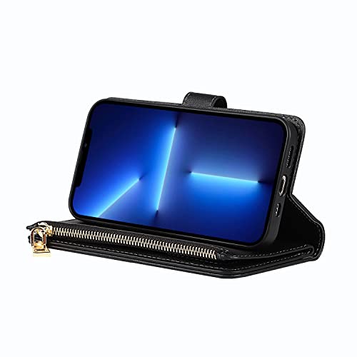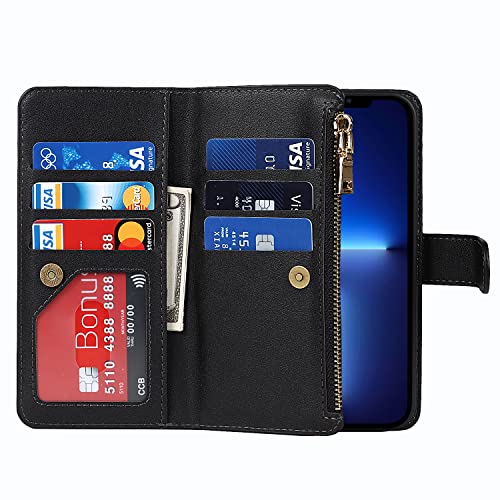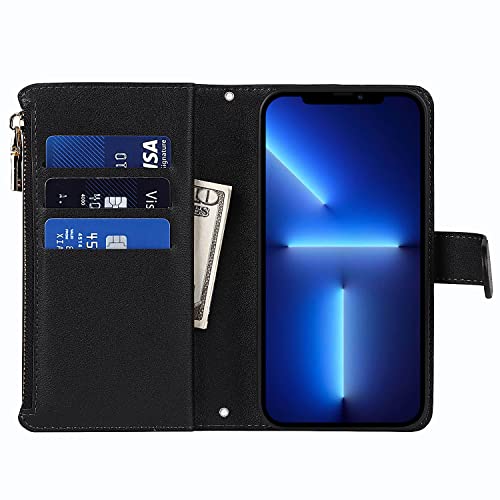 Copmob Cover iPhone 13 PRO Max con Cordino,Flip Portafoglio Custodia in Pelle,[9 Porta Carte][Chiusura Magnetica],Custodia Libro Cover con Laccio per iPhone 13 PRO Max - Nero