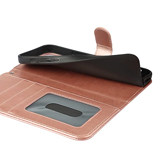 Copmob Cover iPhone 14 con Cordino,Flip Portafoglio Custodia in Pelle,[4 Porta Carte][Supporto Stand][Magnetica],Custodia Cover Libro per iPhone 14 - Oro Rosa