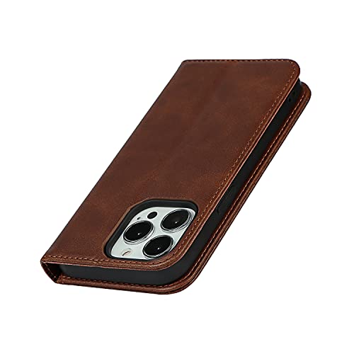 Copmob Cover per iPhone 13 Pro,Flip Portafoglio Custodia in Pelle [3 Fess][Funzione di supporto][Chiusura magnetica],Custodia a portafoglio per iPhone 13 Pro - Marrone scuro