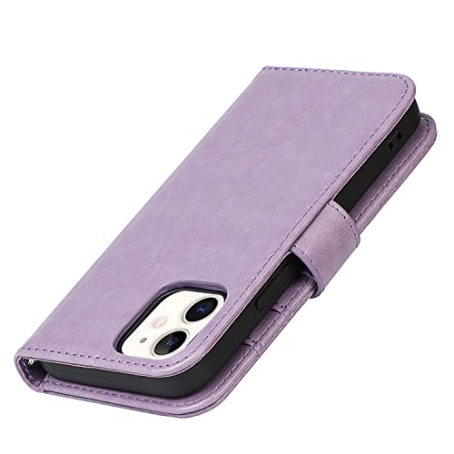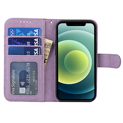 Copmob Cover iPhone 12 Mini con Cordino,Flip Portafoglio Custodia in Pelle,[4 Slots][Supporto Stand][Magnetica],Custodia Cover Libro con Laccio per iPhone 12 Mini - Viola