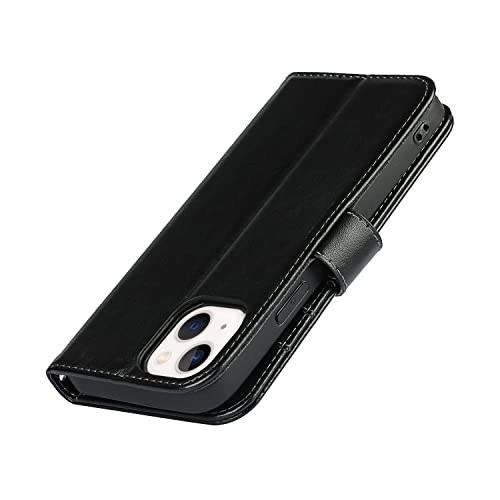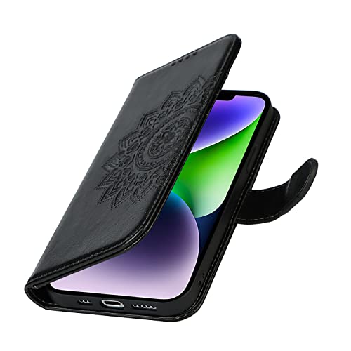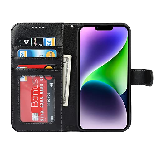Copmob Cover iPhone 14 Plus con Cordino,Flip Fiori Portafoglio Custodia in Pelle,[4 Porta Carte][Supporto Stand][Magnetica],Custodia Cover Libro per iPhone 14 Plus - Nero