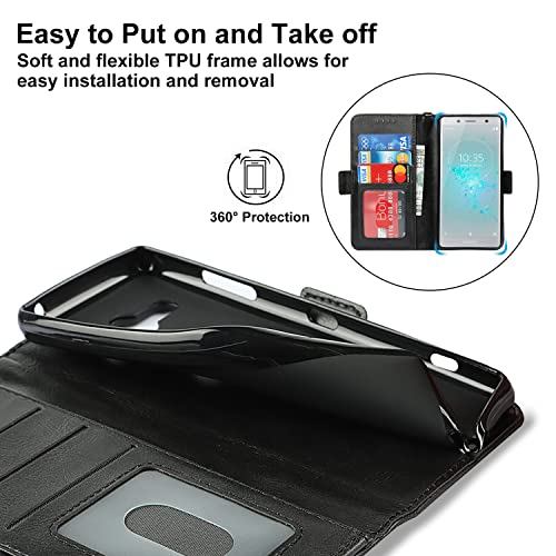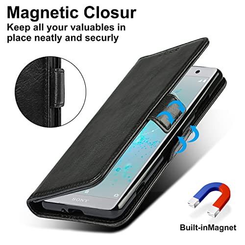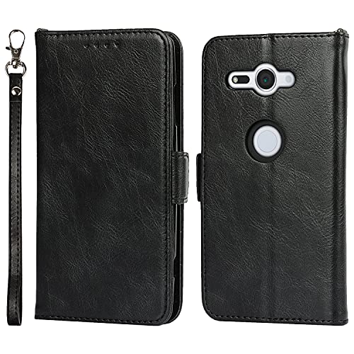 Copmob Cover Sony Xperia XZ2 Compact,Flip Portafoglio Custodia in Pelle,[con Cordino][3 Slot][Blocco RFID][Chiusura Magnetica],Custodia Cover Libro Caso per Sony Xperia XZ2 Compact - Nero