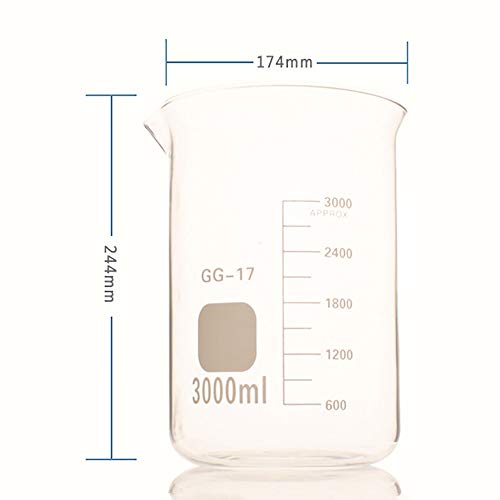 Coppa Graduata Becher Di Vetro, Resistenza Alle Alte Temperature Borosilicato, Scuola Laboratorio Di Laboratorio Specifiche Multiple Misurare E Miscelare Becher Con Beccuccio,3000ml