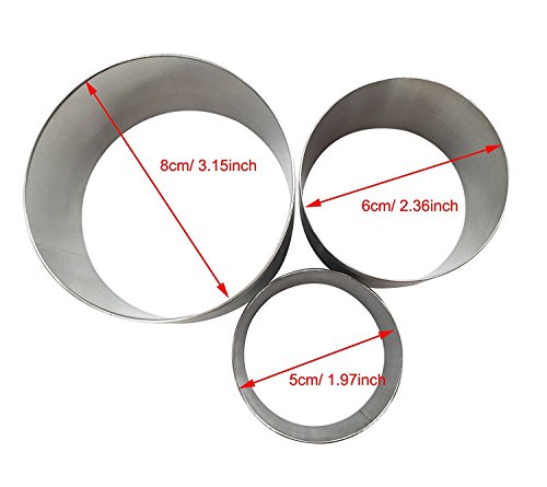 Set di 3 coppapasta, professionali, in acciaio INOX, per presentare il cibo “a torre”, forma rotonda