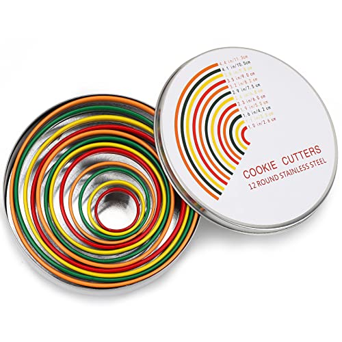 Coppapasta Rotondo Formine per Biscotti Acciaio Inox Set Tagliabiscotti per Panini, Frutta, Verdura, Fondente, Torte, Biscotti Set di 12