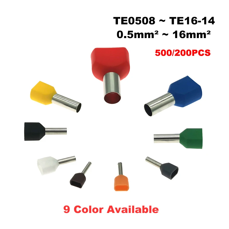 Copper Crimp Terminals TE0508~16-14 Dual Wire Tube Insutated Cord End Electric Double Line Cable Ferrules 0.5~16mm2 500/200Pcs