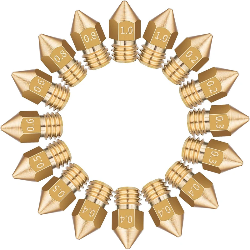 0.2mm 0.3mm 0.4mm 0.5mm Copper Extruder Threaded 1.75mm 3.0mm Filament Head Brass Nozzles For MK7 MK8 Nozzle 3D Printer Parts