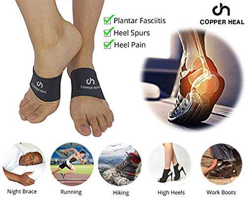 COPPER HEAL Arch Support Supporto per il arco plantare compressione in rame 2 unità supporto fascite Speroni tallone punte piatte Solette tendine dachille Scarpe Dr Night Splint Scarpe corsa