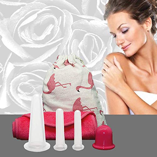 SET COPPETTE MASSAGGIO VISO ANTIRUGHE TONIFICANTE 5 PCS - 4 Coppette Silicone per Massaggi Coppettazione Vacuum Effetto Riduzione Rughe Occhiaie Doppio Mento + 1 Panno Detergente Struccante