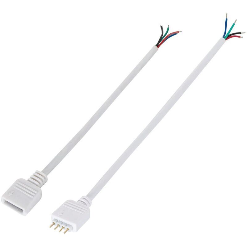 Kit composto da due cavi di connessione rapida, uno con connessione maschio e l'altro con connessione femmina, necessari per la connessione di una striscia LED RGB di 4 pin. SCHEDA TECNICA: Dimensioni: 6x14x300 mm Certificati: CE & RoHS,UKCA Garanzia: 3 Anni