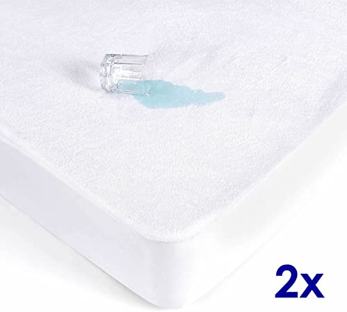 Coppia di Coprimaterasso Matrimoniale Impermeabile | Cerata letto matrimoniale - con angoli - Elastico adatto da 160x190cm fino a 180x200cm, Super Silenzioso e lavabile