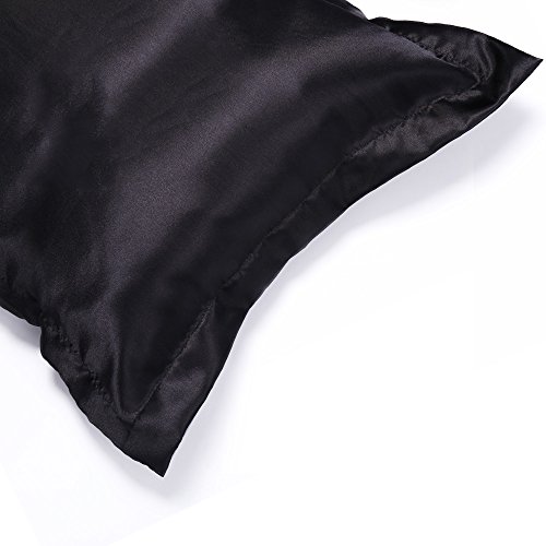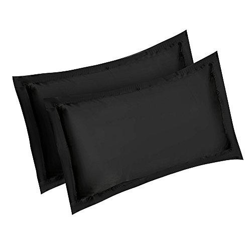 Coppia di federe per cuscini in seta, dimensioni: 84 x 54 cm, ideale per la salute di pelle e capelli Nero