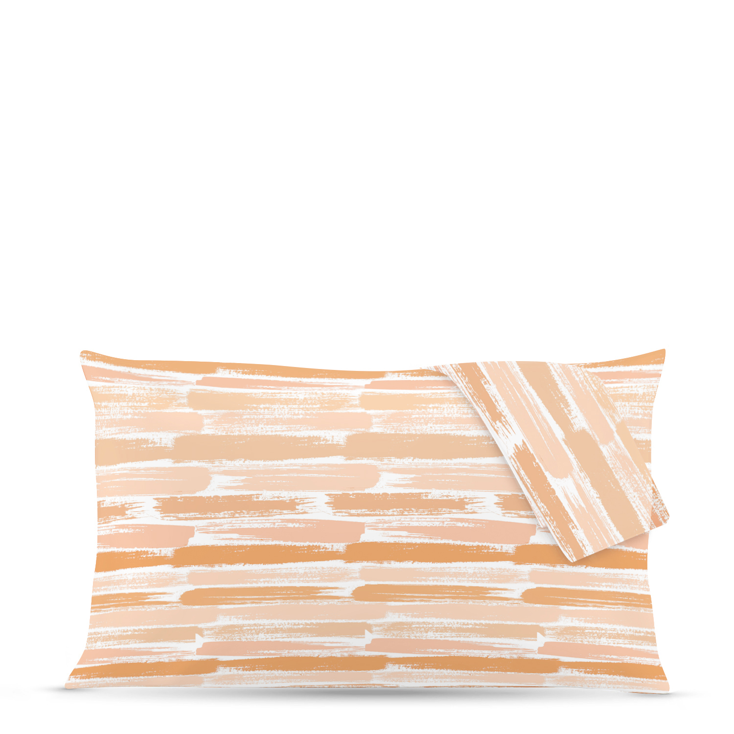 Completa il tuo letto primaverile ed estivo abbinando al copriletto trapuntato le sue federe coordinate. Realizzate in 100% morbido cotone, sono delicate sul viso e offrono una fresca base d'appoggio per garantirti un sonno riposante ogni notte. La stampa è caratterizzata da colorate pennellate sui toni dell'arancione pastello che vestiranno i tuoi cuscini con un tocco artistico e delicato. Facili da posizione per ricoprire i tuoi cuscini, le due federe del set hanno misura 52x82 cm. Lavabili in lavatrice a 30° con centrifuga bassa. Si consiglia di asciugarle all'aria aperta, evitando quindi l'asciugatura in tamburo e di stirarle a una temperatura massima di 110°.