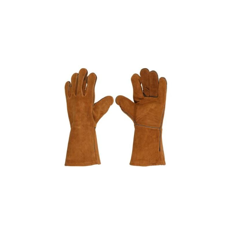 Pratici guanti in cuoi da utilizzarsi per le grigliate: gradevole superficie scamosciata morbida e confortevole.