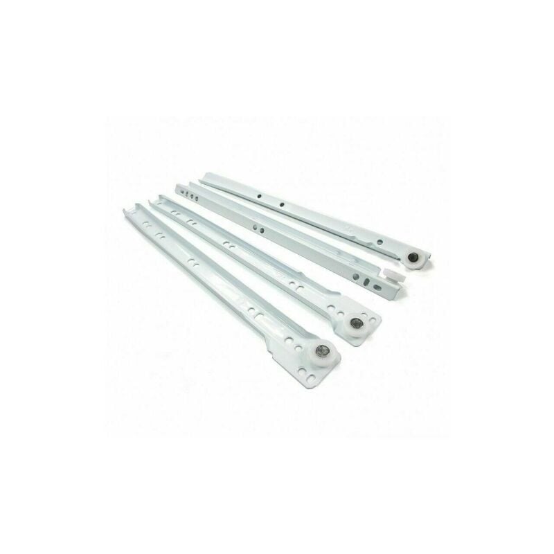 Guide scorrevoli in coppia per cassetti fondo con aletta da 35 cm - Acciaio verniciato - Colore BIANCO Ogni coppia e' composta da 2 guide da fissare al mobile + 2 scorrevoli da fissare al cassetto. DIMENSIONI: Lunghezza guida: 350 mm Lunghezza 1: 272 mm Lunghezza 2: 622 mm Capacita' di carico: Kg 20...