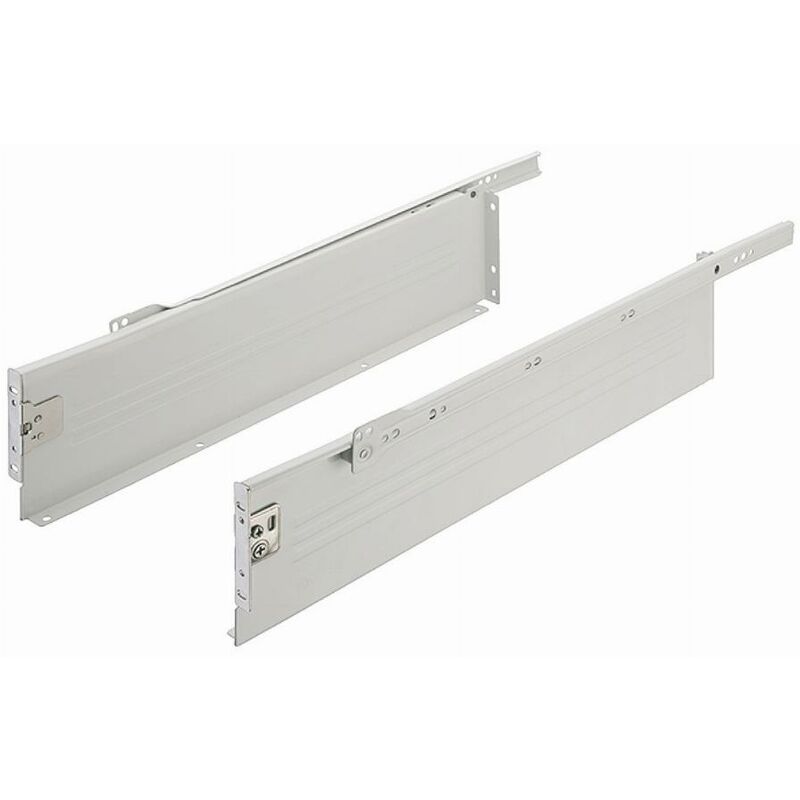 Dettagli: Sistema di spondine a parete singola, Häfele Matrix Box Single A25, estrazione parziale, altezza 118 mm, alluminio bianco, RAL 9006 Applicazione per cassetti ed estensioni frontali Portata 25 kg/coppia Materiale acciaio Finitura plastificata Design con guida a rulli Tipo di estrazione Guida del cassetto con chiusura automatica ad estrazione Possibilità di regolazione bidimensionale del pannello frontale, con inclinazione eccentrica del pannello frontale mediante supporto per la galleria longitudinale Montaggio a vite sul pannello laterale in una linea di fori da 32 mm Fissaggio del pannello frontale: a vite Bianco