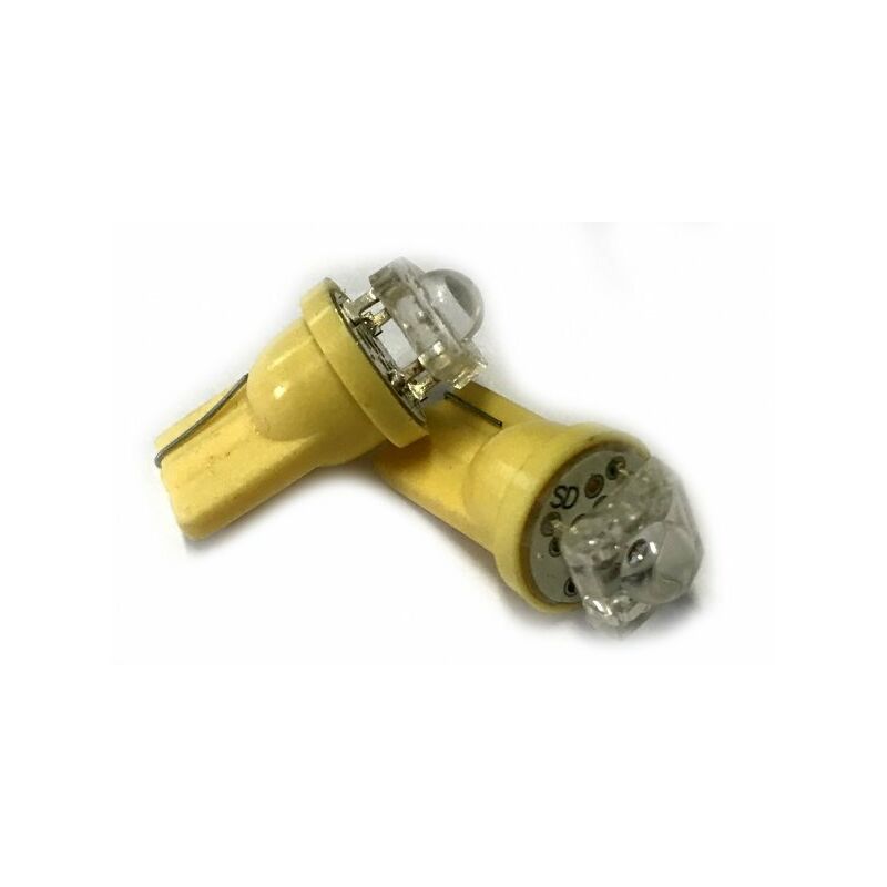 Coppia 2 Lampade Led T10 Con 1 Led F5 Flux Colore Giallo Yellow 12V 0,2W Attacco:T10 W5W Voltaggio: 12V Potenza: 0,2W Numero Led:1 Led F5 Flux Colore:Giallo Yellow Misura:Lunghezza Totale 27mm,Diametro 12mm Confezione: 2 Pezzi