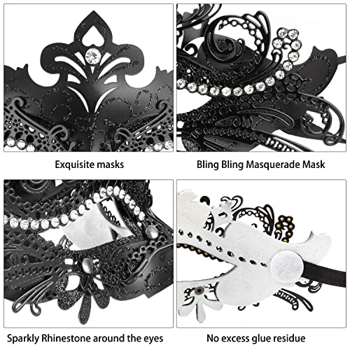 Coppia di maschere veneziane in metallo e in plastica, per carnevale e Halloween Black-8