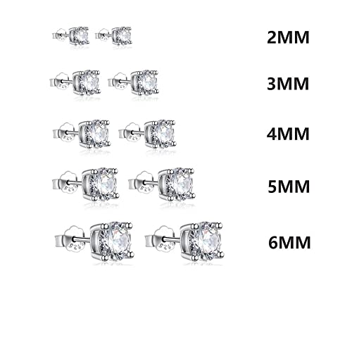 Coppia di Orecchini Punto Luce in Argento Rodiato 925% con Zirconi taglio Brillante - Disponibili in diversi colori e dimensioni (2 mm, Argento Placato Oro)