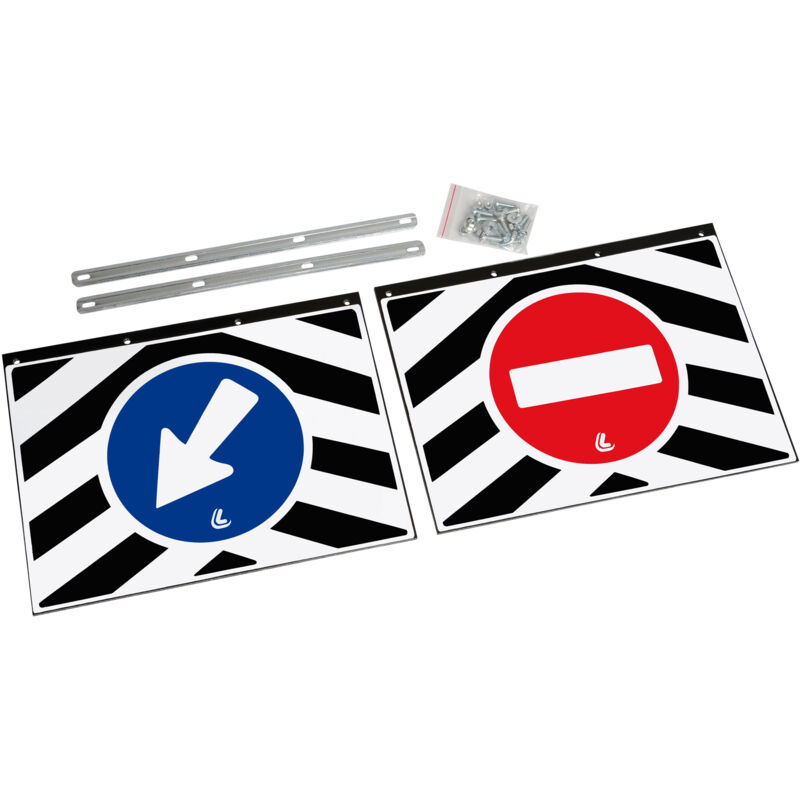 Lisci con segnaletica. Spessore 5 mm.Completi di staffe in acciaio zincate e viti di fissaggio