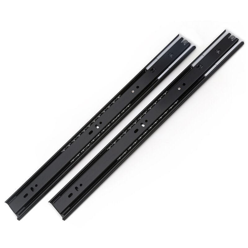Guide del cassetto a chiusura morbida - Utilizzando doppie molle, tampone in rame puro, sicuro e silenzioso, il cassetto si chiude automaticamente lentamente per evitare che le dita vengano pizzicate. 【Corsa del cassetto 【Cassetto a montaggio laterale】Lunghezza: 300 mm (12 pollici). Puoi scegliere la dimensione delle guide in base alla profondità del cassetto. 【Prevenzione della ruggine e lunga durata】Trattamento di elettroforesi superficiale. Lo strato elettroforetico impedisce all'aria di entrare direttamente in contatto con la piastra in acciaio del binario, sono durevoli e la normale durata di servizio delle guide supera i 30 anni 【Rimovibile e liscia】 : È presente una fibbia in plastica nera sul retro della diapositiva e il cassetto può essere facilmente rimosso premendolo , Facile da installare. Cuscino in gomma, evita la collisione di spinta e trazione durante l'uso, le doppie file delle robuste sfere in acciaio rendono il cassetto aperto più liscio e silenzioso. Antiruggine
