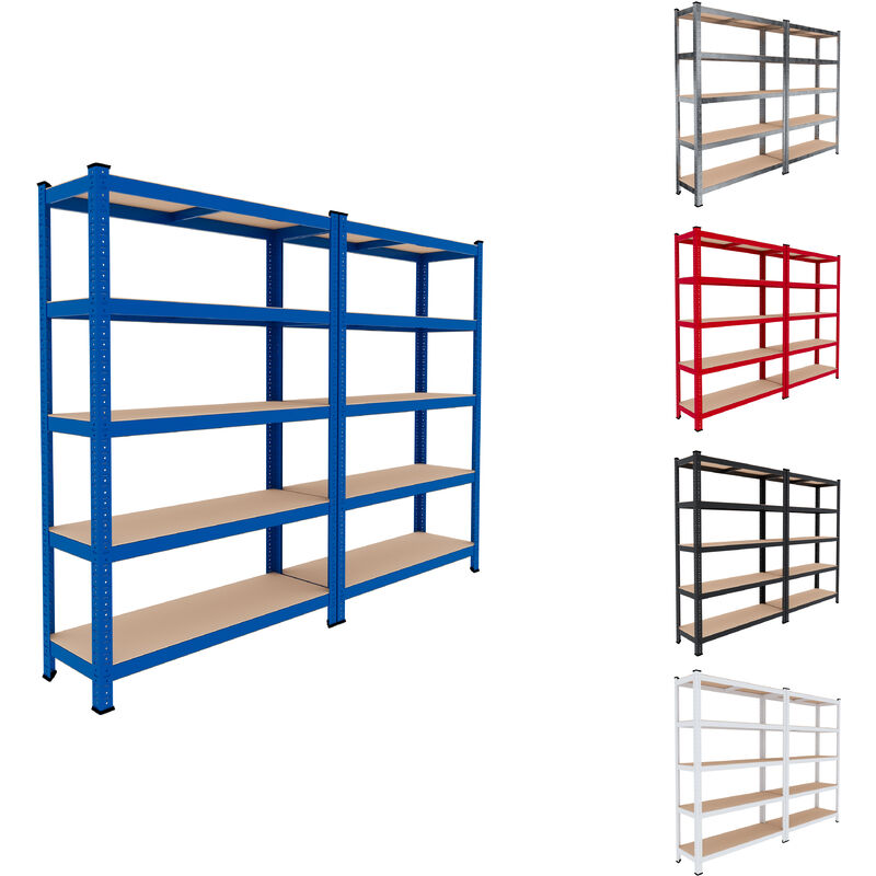 Set di 2 scaffalature Monterrico con 5 ripiani in metallo e MDF. Ideali per garage, officine, cantine o magazzini. Grazie alla loro alta portata di 875 kg a scaffale, sono in grado di immagazzinare qualsiasi tipo di oggetto. Di facile montaggio grazie alla struttura senza bulloni (Push-fit) che può essere montata senza l'utilizzo di attrezzi. Caratteristiche principali: - Dimensioni totali del singolo scaffale: 180 x 120 x 40 cm (Altezza x larghezza x profondità) - Portata massima a scaffale: 875 kg - Portata massima per ripiano: 175 kg - 5 Ripiani realizzati in MDF - Ripiani regolabili in altezza - Antiruggine - Costruzione senza bulloni - Struttura in ferro - Adatto per immagazzinare qualsiasi tipo di oggetto - Colore: blu Contenuto della confezione: 2X Scaffalautura con 5 ripiani 2X Manuale di montaggio