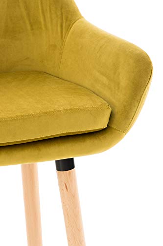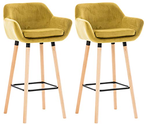 CLP Coppia di Sgabelli Bar Grant in Velluto Sfoderabile I Set 2 Sedie Alte Cucina in Legno con Cuscino Removibile, Colore:Giallo