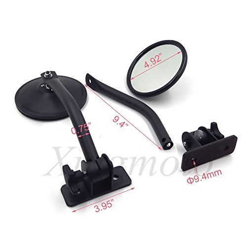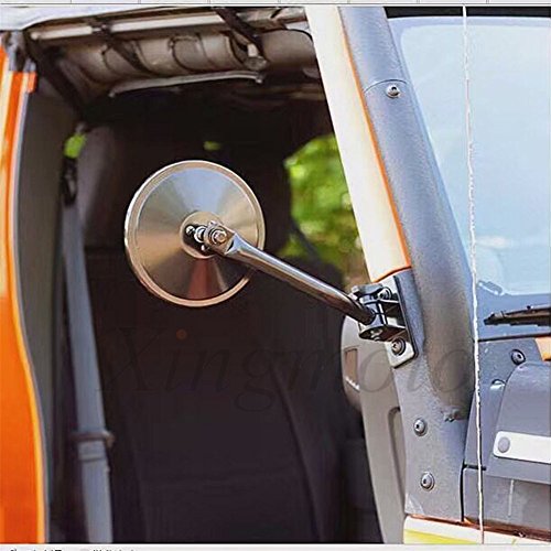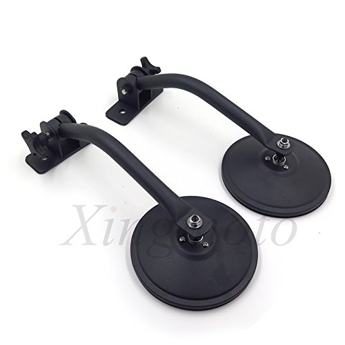 Montaggio: specchietto retrovisore rotondo nero per Jeep Wrangler 1997 - 2017, con braccio e accessori di montaggio.