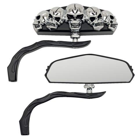 Kit Coppia Specchietti Specchi Retrovisori Neri Skull-Vision Genuine x Moto Harley Davidson