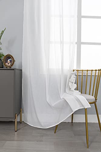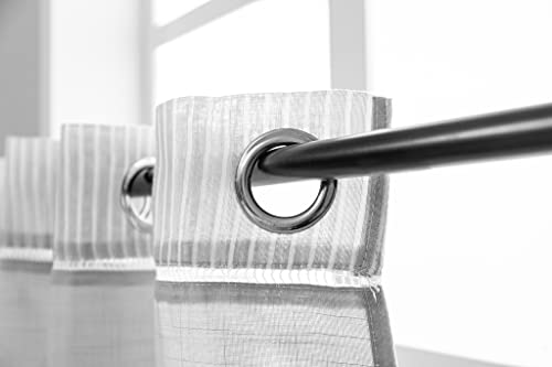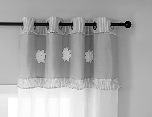Coppia Tende Bianche Semi Trasparenti con Fiore di Loto e Orlo Superiore Grigio Tenda per Balcone Porta Soggiorno Camera e Cameretta 2 Pannelli con Occhielli (Grigio, 140x280cm)