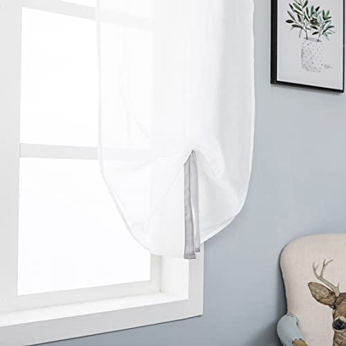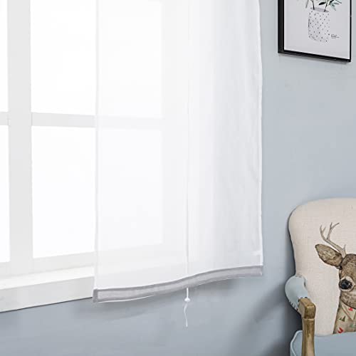 Coppia Tende Bianche Semi Trasparenti Orlo Superiore Grigio con Merletto Tenda per Finestra Soggiorno Camera e Cameretta 2 Pannelli con Tasca 60x150cm