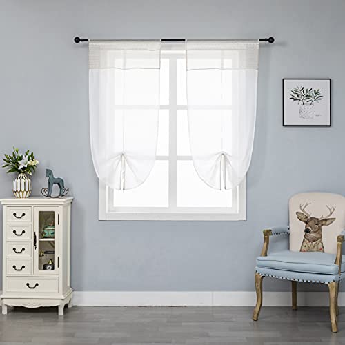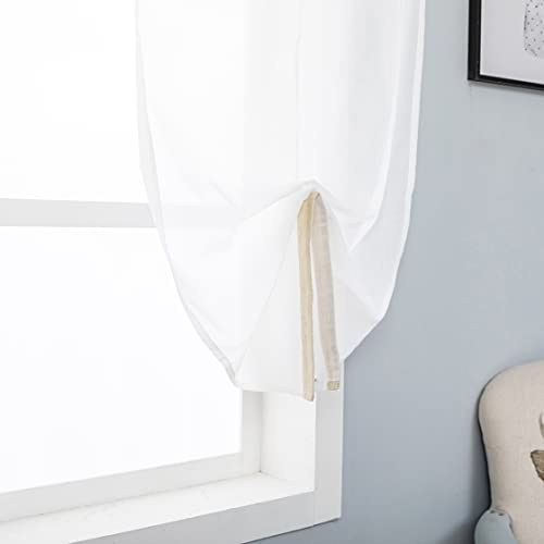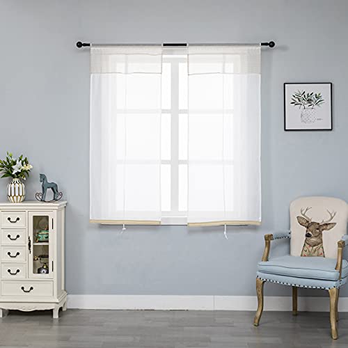 Coppia Tende Bianche Semi Trasparenti Orlo Superiore Beige con Merletto Tenda per Finestra Soggiorno Camera e Cameretta 2 Pannelli con Tasca 60x150cm