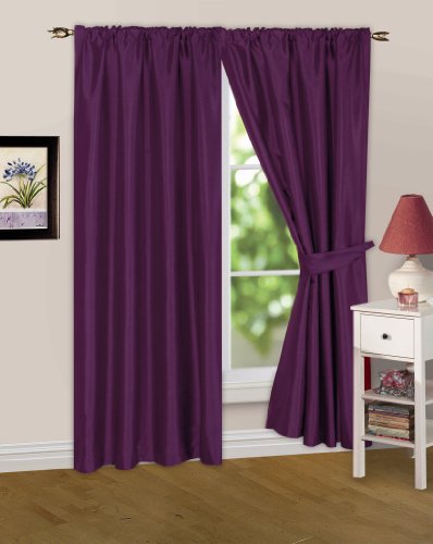 Coppia di tende color melanzana, 167,6 x 183,9 cm, foderate in finta seta, plissettate, larghezza 167,6 x 182,9 cm