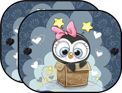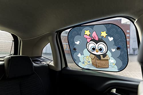Coppia tendine laterali auto attacco a ventosa pinguino salvaspazio protezione universali bambini oscuramento 44x36 cm
