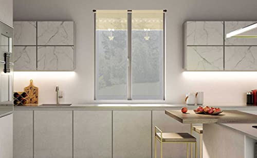 Coppia di tendine a vetro da cucina a pannello con passante art GEORGIA tessutto effetto lino seta in poliestere per finestra e porta finestra in salotto cucina bagno mis 60x240cm farfalla beige