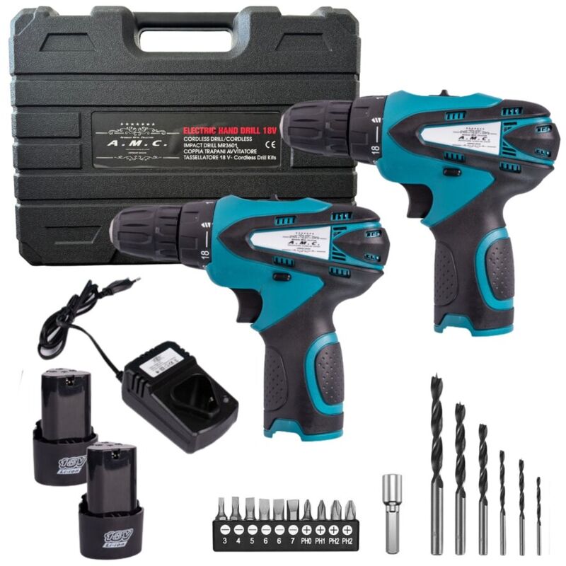 Scheda tecnica Coppia trapani avvitatore tassellatore, con doppia batteria in dotazione, caricabatterie e una comoda valigetta per il facile trasporto. Entrambi i trapani hanno una comoda impugnatura ergonomica per non stancare durante l'utilizzo prolungato. Voltaggio 18V Batteria 1300 mAh Velocita' a vuoto 0-350 rpm / 0-1350r/min Coppia Massima 26 N.m Coppia 1 trapano avvitatore, 1 trapano tassellatore Impugnatura ergonomica Si Trasmissione con ingranaggi in acciaio Si Contenuto della confezione Coppia di trapani avvitatore/tassellatore doppia batteria caricabatterie Valigetta per un comodo trasporto