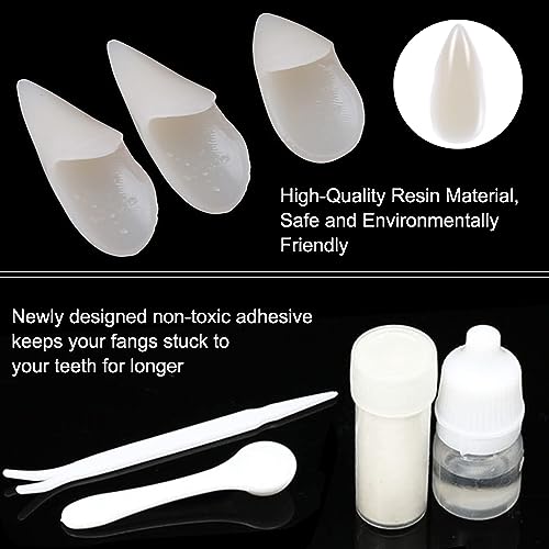 【MATERIALE SICURO】 Le nostre protesi di Halloween sono realizzate in resina di alta qualità, sicura e non tossica, e l'adesivo è realizzato con dentifrici e dentifrici professionali, quindi puoi usarli con tranquillità. La colla fa aderire a lungo le tue zanne ai tuoi denti, dandoti immagini realistiche. Ti rende più comodo da indossare per feste a tema Halloween, spettacoli teatrali o occasioni horror.