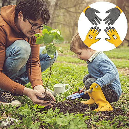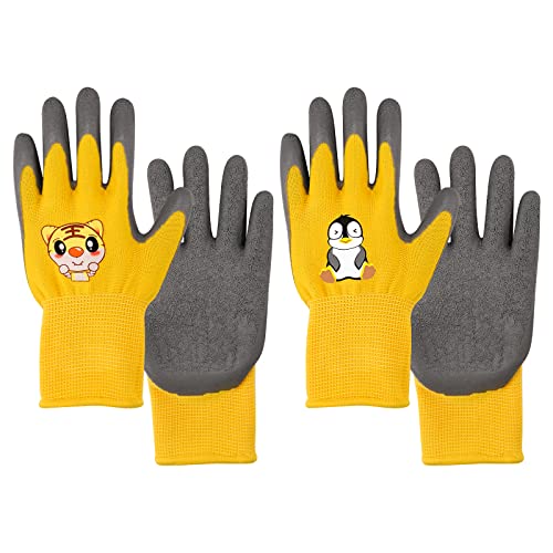 2 Coppie Guanti da Giardinaggio per Bambini Guanti da Giardinaggio in Lattice Prova di Spine Resistente al Taglio Anti-morso Poliestere Giallo Guanti da Lavoro per Bambino per Ragazze Ragazzi Età 2-5