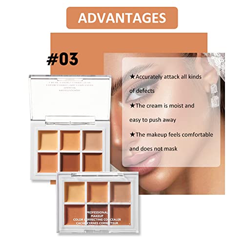Coprente Palette da Trucco, Concealer Contour Palette, Concealer Palette, Paletta Correttore con Formula Leggera, Palette 6 Correttori per Correggere le Imperfezioni,#03