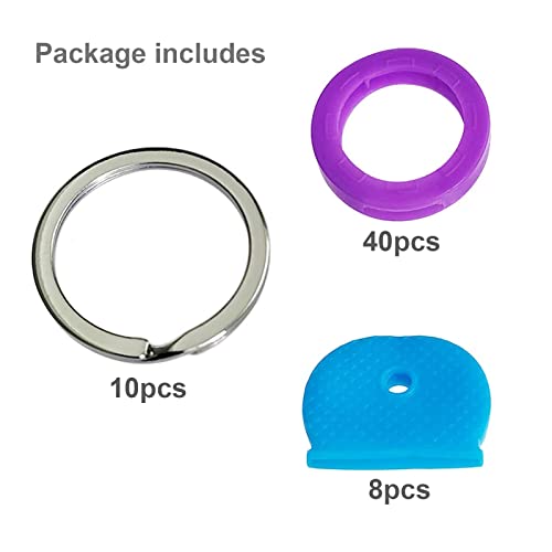 CYH Copri Chiavi, 40 Pezzi Coprichiavi Colorate Gomma, Etichette per Copertine di Chiave Flessibile Cover Chiavi per Facile Identificazione Chiave di Porta, 8 Colori, con 10 Anelli Chiavi