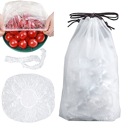Copri Ciotola Elasticizzati da 100 Pezzi, Involucro di plastica PE Riutilizzabile Copri Ciotola per Alimenti Elastici Contenitori, Alternativa alla Copertura Universale per Ciotola in Alluminio
