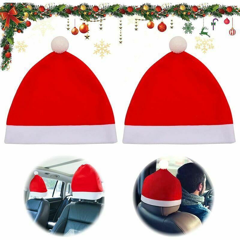 Fodera per cuscino con testa di Babbo Natale: vesti la tua auto con il nostro cappello di Babbo Natale. Quando viaggi o sei in vacanza con la tua famiglia e i tuoi amici in molti posti meravigliosi, i nostri poggiatesta con cappello di Babbo Natale porteranno a te e ai tuoi passeggeri un'atmosfera festosa. Dimensioni del coprisedile: le misure del coprisedile per auto ispirate al Natale circa 34 x 33 cm e può essere utilizzato con sedie di qualsiasi dimensione. Un set di due fodere per sedie natalizie può essere utilizzato per decorare il conducente e i passeggeri. Spirito del Natale: i nostri cappelli natalizi sono colorati e aggiungono un tocco festivo al tuo viaggio. Il rosso è uno dei colori principali del periodo natalizio, aggiunge fascino alle decorazioni natalizie e rende divina la tavola. È anche divertente per i pasti e le celebrazioni delle vacanze. Design intuitivo: i nostri ornamenti per cappelli natalizi soddisfano i requisiti di sicurezza. I nostri ornamenti natalizi
