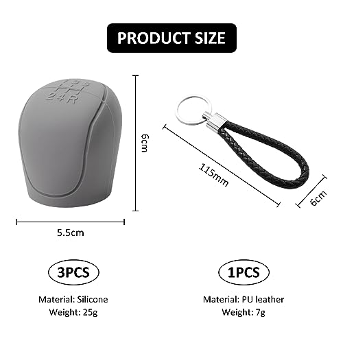 【Qualità eccellente】: 3 copri pomello del cambio per auto, 1 portachiavi.Il coperchio del cambio è realizzato in morbido silicone, inodore e privo di inquinamento, superficie antiscivolo, durevole, resistente all'usura e facile da pulire con acqua.