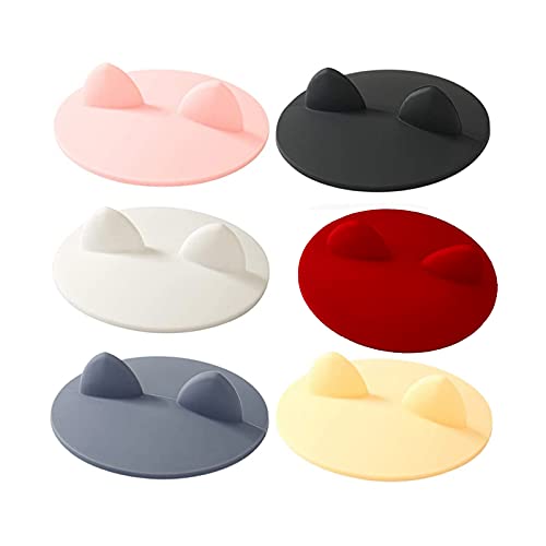 Copri Tazza Rotondi Coperchio della Tazza in Silicone Coperchio per Orecchie di Gatto Prova di Perdite Coperchio Tazza Creativo per Tazza Anti-Polvere Airtight Guarnizione, 6 Pezzi