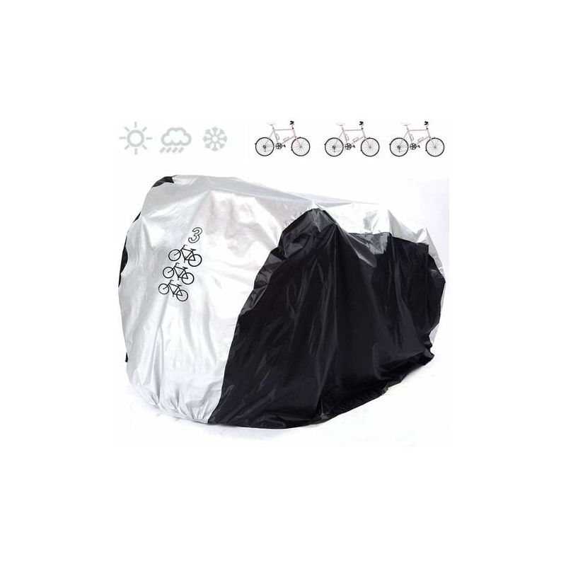 Taglia: L (per 3 bici) 200*105*110 CM (Lunghezza*Larghezza*Altezza) Durevole: realizzato in tessuto taffetà 180T con materiale di rivestimento in PU, più spesso e più resistente. Proteggi la tua bici da pioggia, neve, vento, polvere, sole e graffi. Con tessuto ultrasottile anti-radiazioni, ma anche protezione UV dalla luce solare diretta Capacità: adatto per mountain bike da 3 26 pollici, una bici elettrica e una city bike ./ Fibbia ed elastico speciali progettato per stabilizzare la tua bici Leggera di circa 380 g e facile da piegare, la copertura con la custodia la rende ideale per portarla all'esterno e all'interno La confezione include: 1 * Bicicletta Copre 1 * Borsa per il trasporto