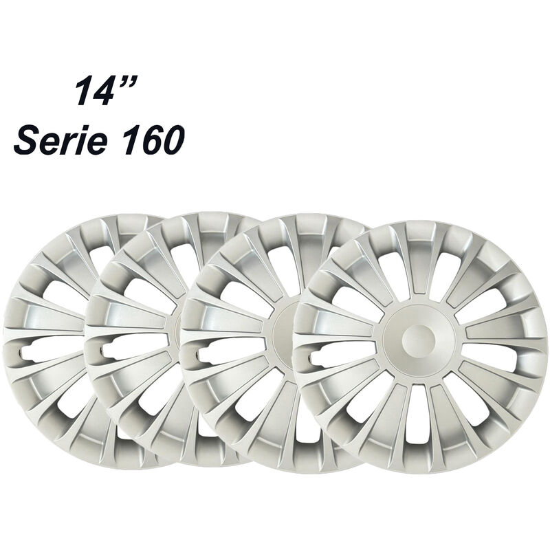 Copriruote universali 14" con incastro anello in ferro, montaggio facile e sicuro Caratteristiche tecniche: Copricerchi universali Modello: serie 160 Set 4 pezzi L'anello di tenuta può essere collocato nella scanalatura superiore o inferiore Adatto a coprire cerchi con raggio: R14 Dimensioni: 40dm x 4.4h cm circa Materiale: polipropilene Colore: Silver Peso: 1,362 kg circa La confezione contiene: Nr. 4 Copricerchi Nr. 4 Anelli